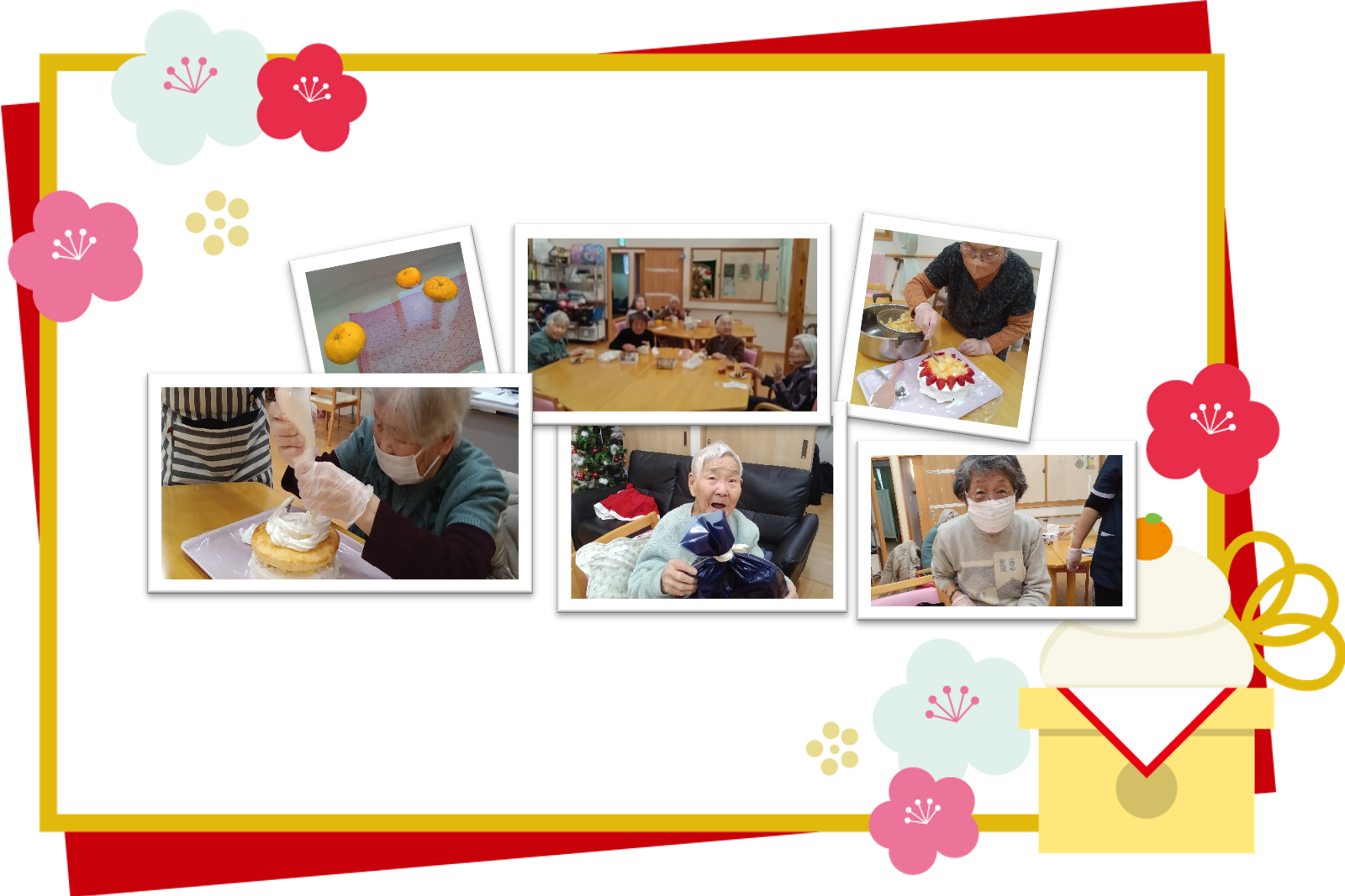 また、クリスマス会を開催しました。今回は、利用者さまが協力してクリスマスケーキ作りに挑戦。生クリームを塗ったり、飾り付けをしたりと、皆さま真剣な表情で取り組まれ、完成したケーキは大好評でした。